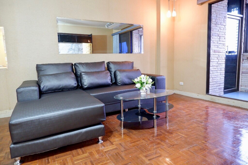 3.โซฟาชุดใหญ่ + โต๊ะกลาง + แจกันดอกไม้ตกแต่ง