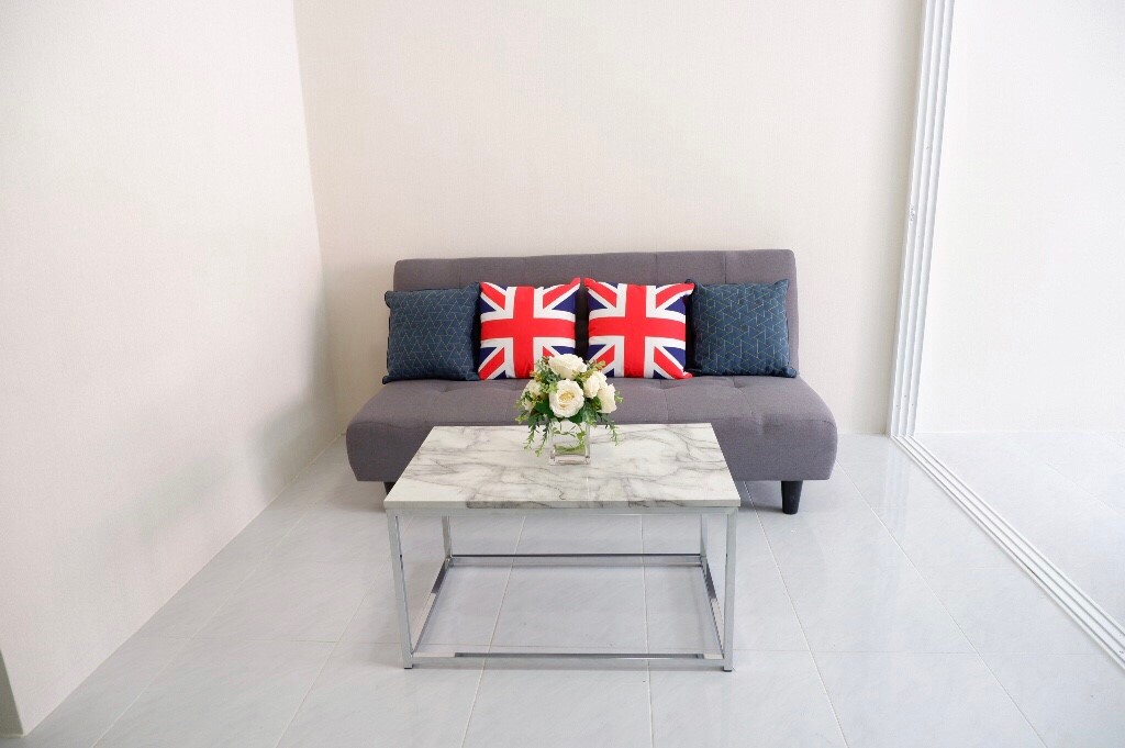 4.โซฟา + โต๊ะกลาง + แจกันดอกไม้ตกแต่ง
